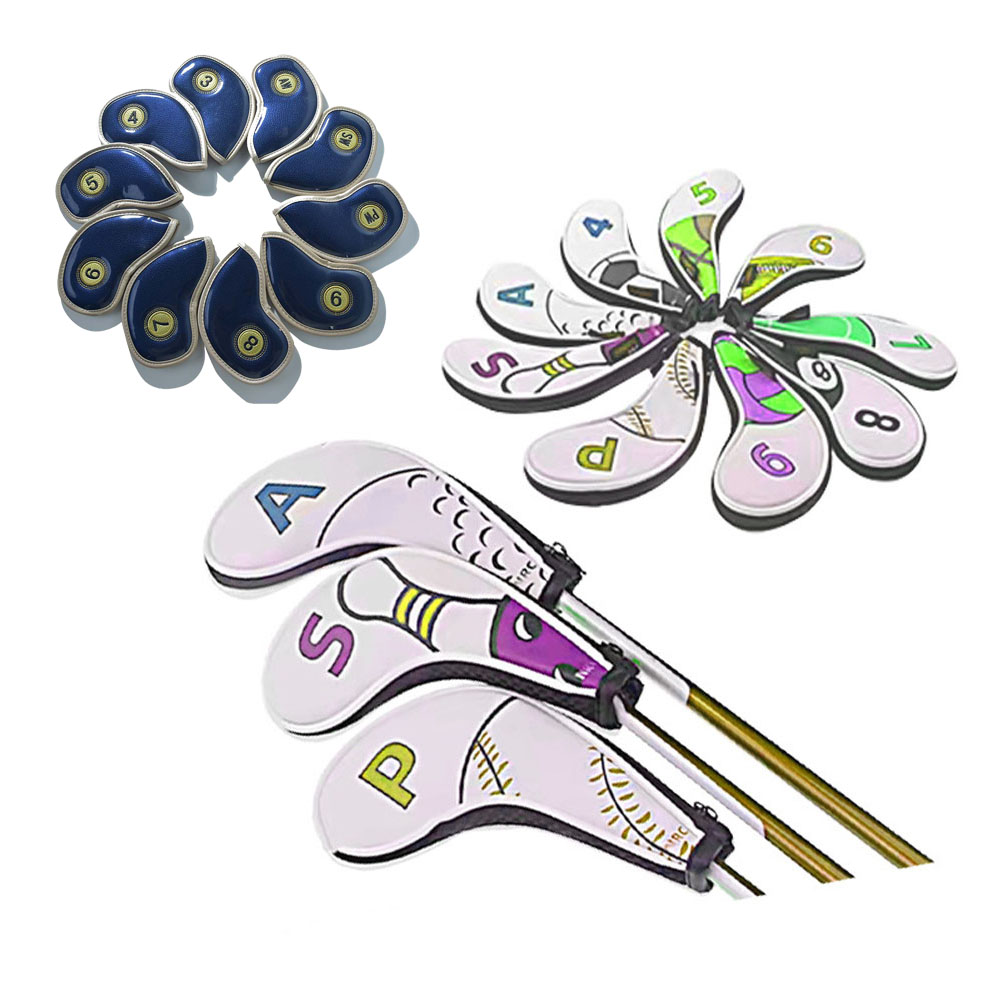 10Pcs/Pack PU Leather Golf Iron Covers Set Golf Club Head Cover with Magic Tape
