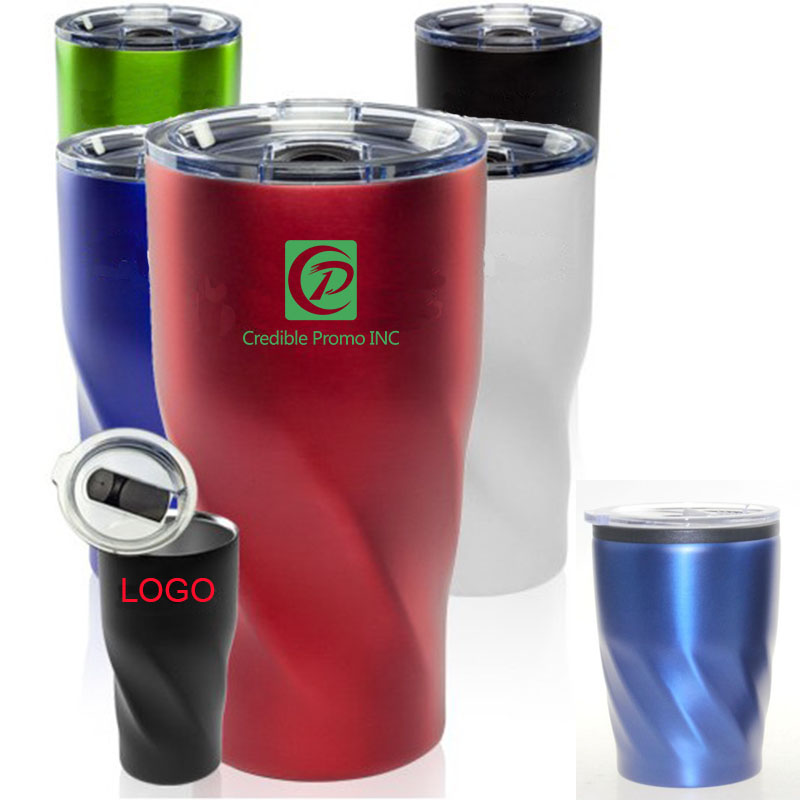 Outer layer is made of stainless steel and inner is made of food grade PP. These travel mugs with wave design are sure to get your brand a little morning attention. They feature a double wall construction to keep the temperature of your drinks longer, and hold up to 12 ounces of your favorite coffee blend to ensure you're wide awake for that early meeting. Custom logo and colors are welcomed.