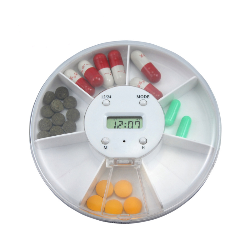 3.This pill box organizer have five different alarm times or a count-down timer, alerts the patient when medication needs to be taken.