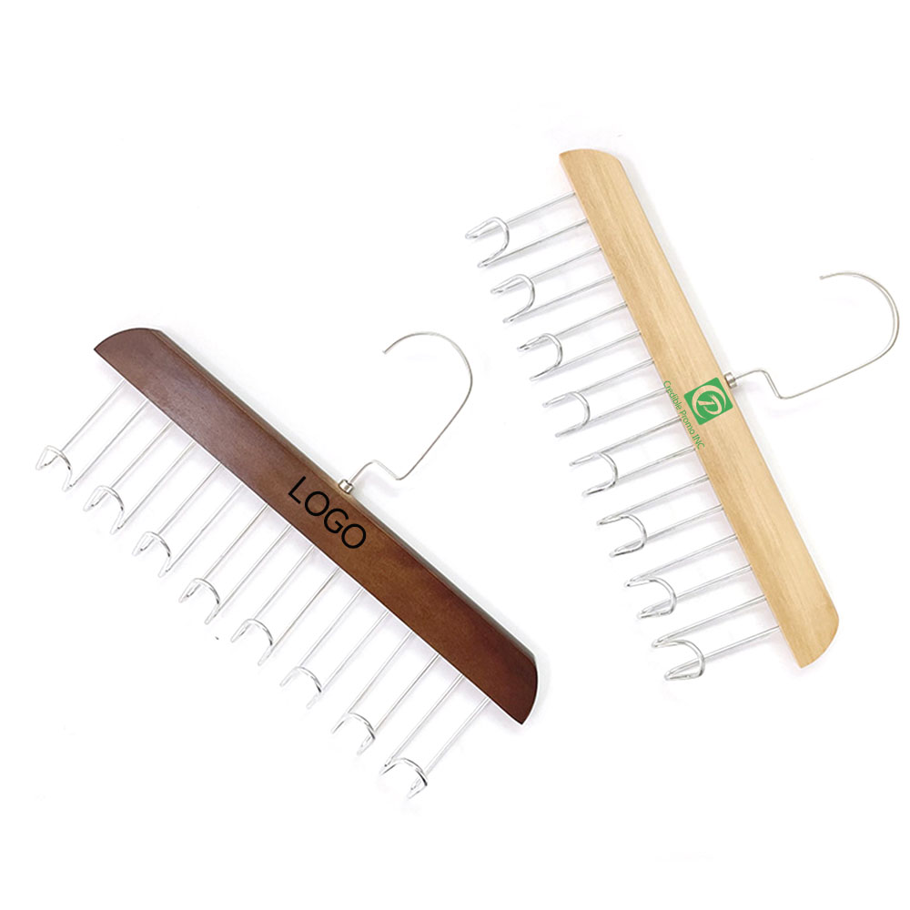 Our cloth hanger are made of high-quality wooden and durable stainless steel, which are durable! It has 8 hooks to hold belts and ties firmly in place, You can use it to hang your accessories, ties, belts, headbands, scarves, underwear, panties, all in orderly storage. The slim design provides a clean and minimalist look. It can be 360 degree rotation.