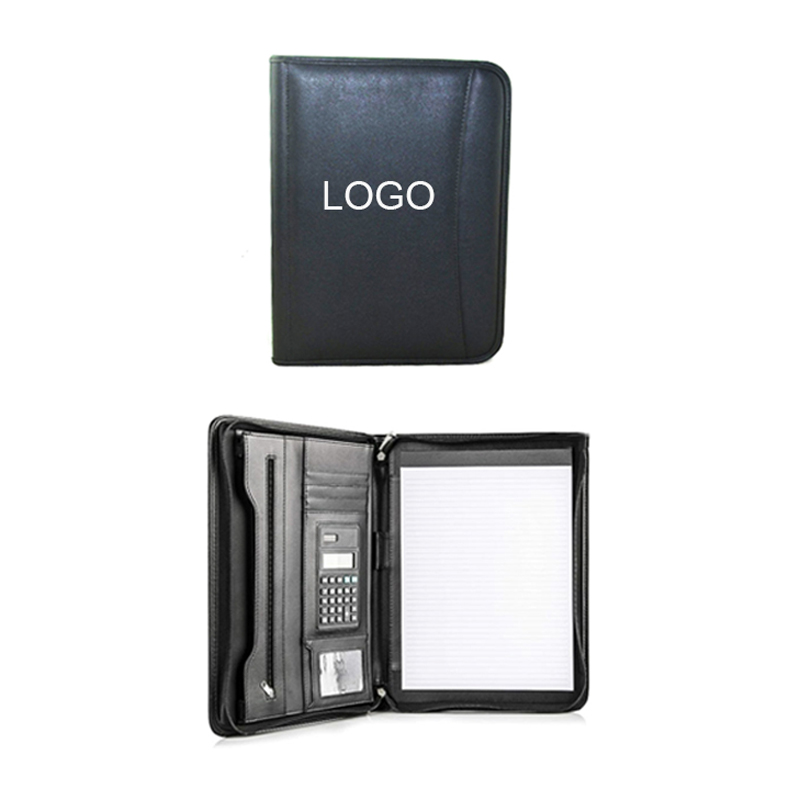| Feature : | Black Superior Vegan Leather Business Portfolio with Zipper, Presentation Slot, Solar Calculator, Card Storage and Writing Pad |