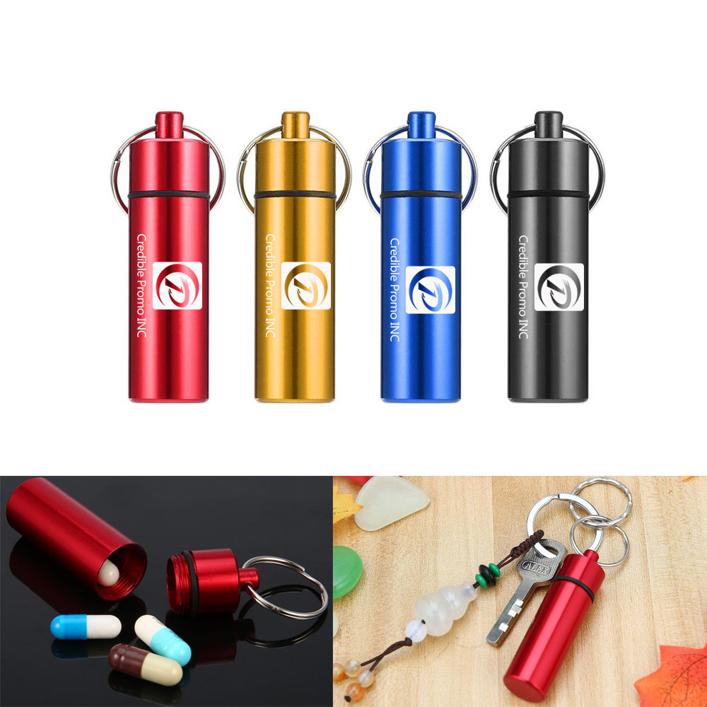 Made of high quality aluminum alloy. Product surface anodic oxidation, waterproof wear-resisting and air tight. Cover can screw up, sealing and waterproofing, inside very clean, can pack emergency pills, commonly used tablets. It can be clipped easily to key chains, handbags, golf bags, belt loops or used as a zipper pull for your coat or jacket. Comes with keychain, can attach on your bag or belt. Perfect to store pills or small item.