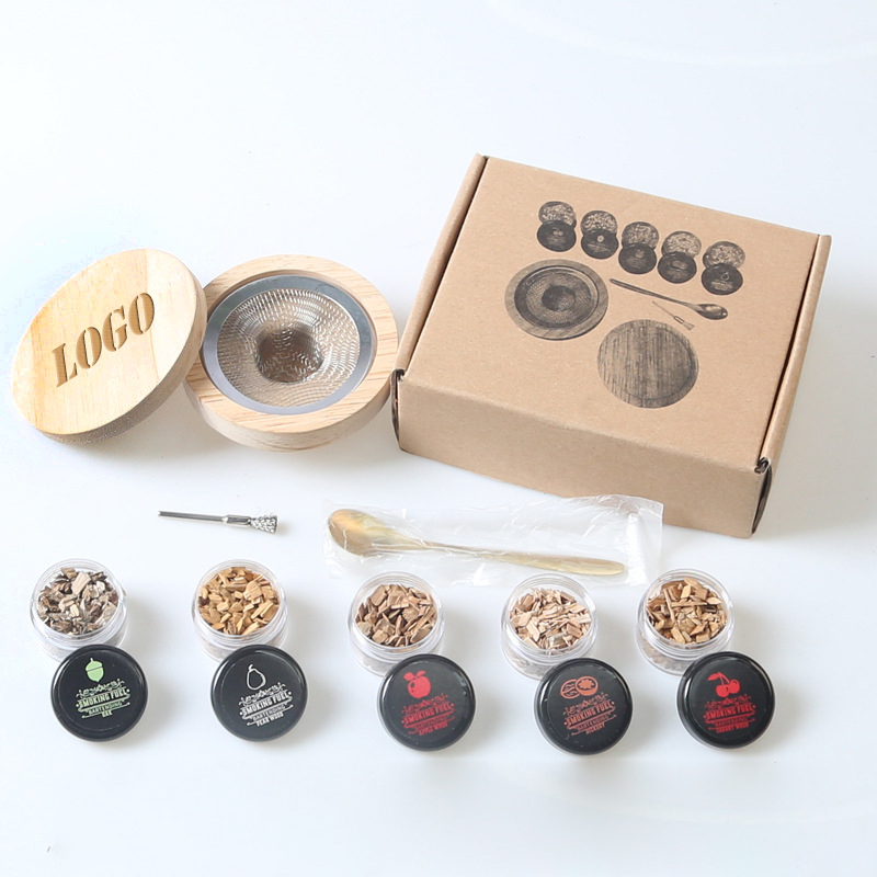 The cocktail smoker set is made of high-quality oak wood, which is durable. Cocktail Smoker set includes a bartending recipe, five different flavors of Wood Chips, one Metal filters, a Spoon, a Cleaning brush, a Wooden smoker with lid. Whiskey smoker is suitable for DIY, you can make natural flavored drinks according to your own taste. Also have a variety of wooden smoker, torch and different flavors of wood chips as options.