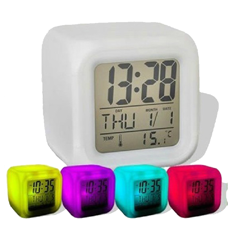 This special LCD alarm clock changes color and includes calendar and thermometer functions. Easy to get attention wherever it goes, to help your promotion at conventions, anniversary activity, and other promotional events.