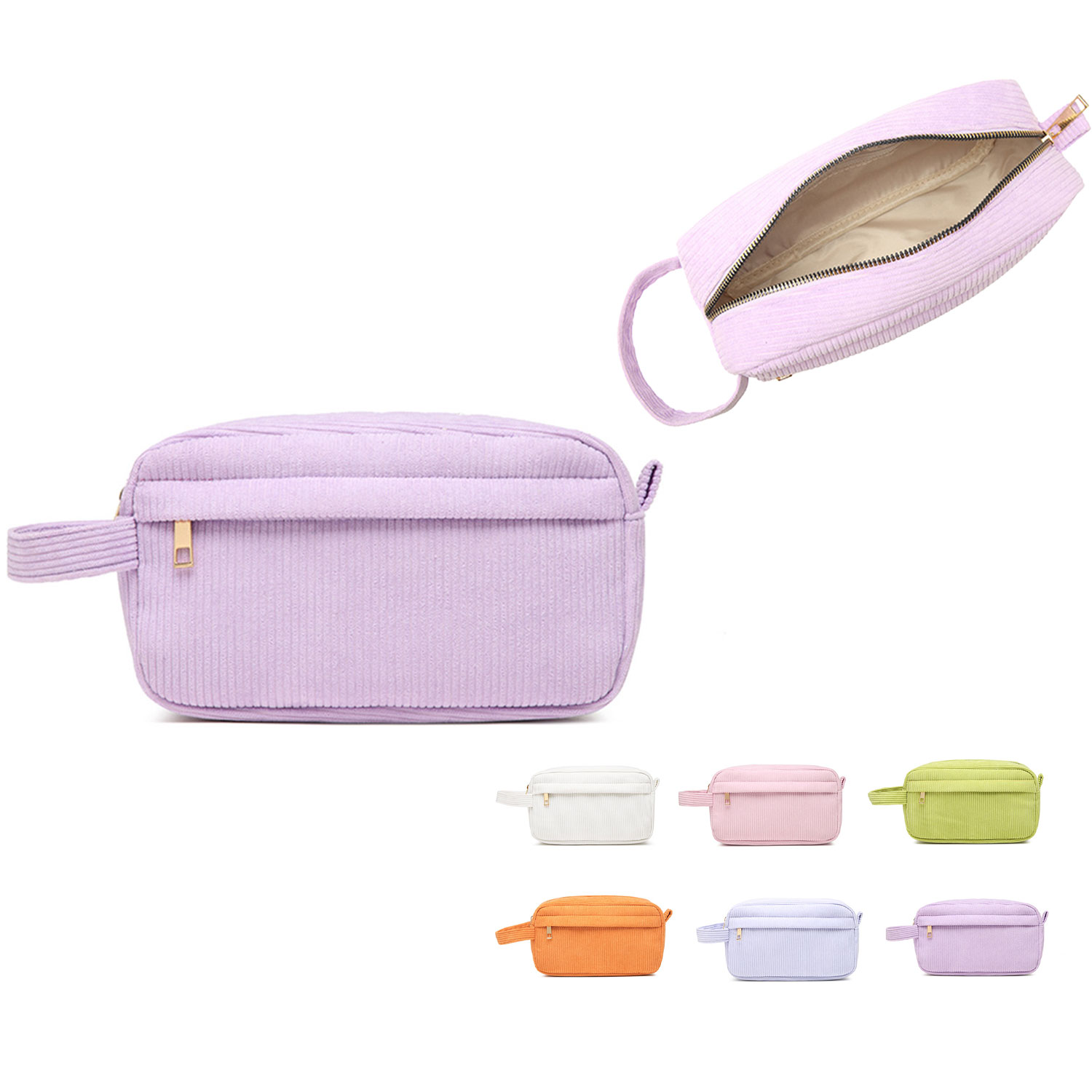 This corduroy storage bag is elegant and decent. It is made of corduroy material, which is soft and stylish. The zipper is smooth and easy to pull, making it convenient to open and close. The round and curved hand-held design stands out with a comfortable feel. It won't pinch your hand even after long holding. Six colors are available.