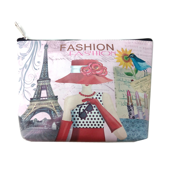 Full color imprinted cosmetic bag, size is 8.5"x6.7". Suit to pack your cosmetic mirror, makeup brushes, lipstick, and so on. Great promotional item for Salon, Barber shop, Spa, etc. Your design can be full color imprinted on the outside of bag. Low Minumum Oder Quantity requirement.