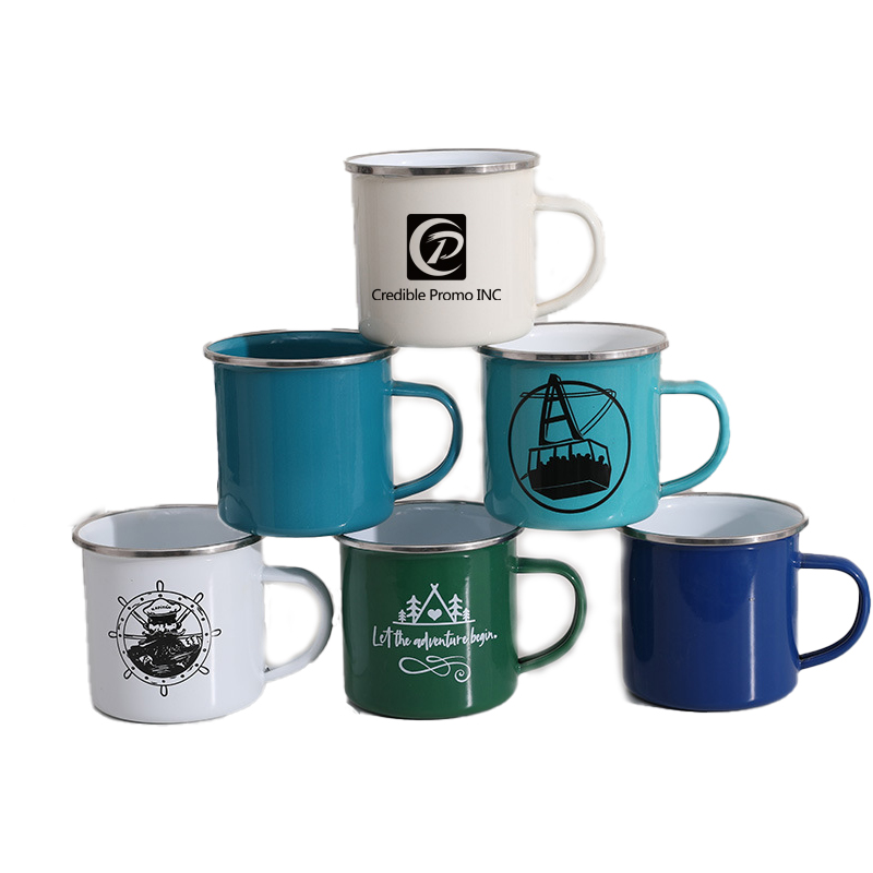 Custom Full Color Imprint 16oz Enameled Steel Cup with Stainless Rim