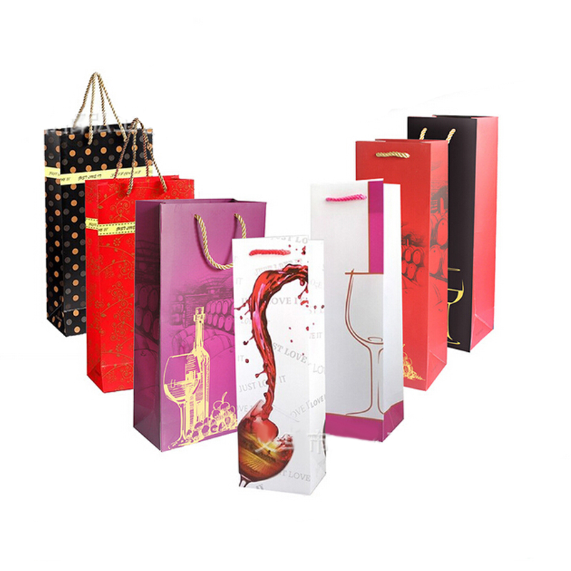 | Feature : | Custom Single Bottle Full Color Imprinting Paper Wine Bag |