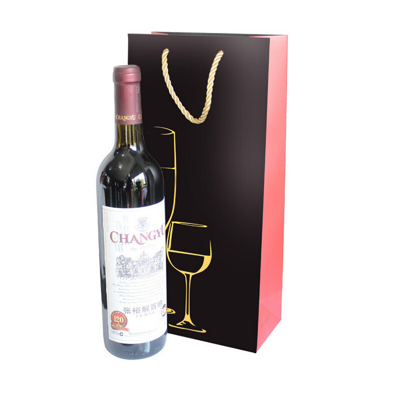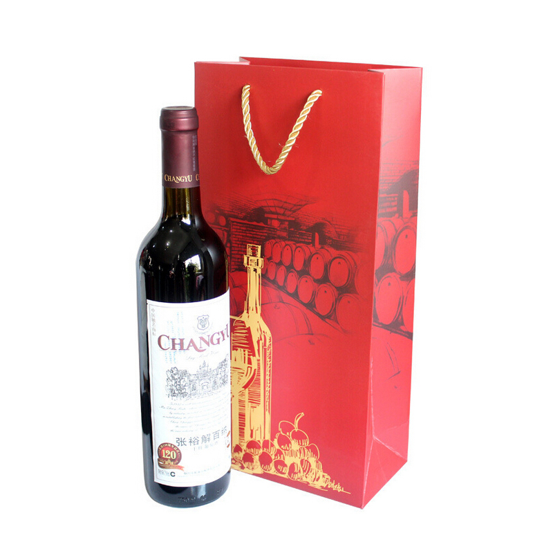 Full color imprinting paper wine bag, single bottle size, dimension is 14.2"x5.1"x3.15". Various size for your option. Your custom design can be fully imprinted on the bag. Welcome call to inquiry us !