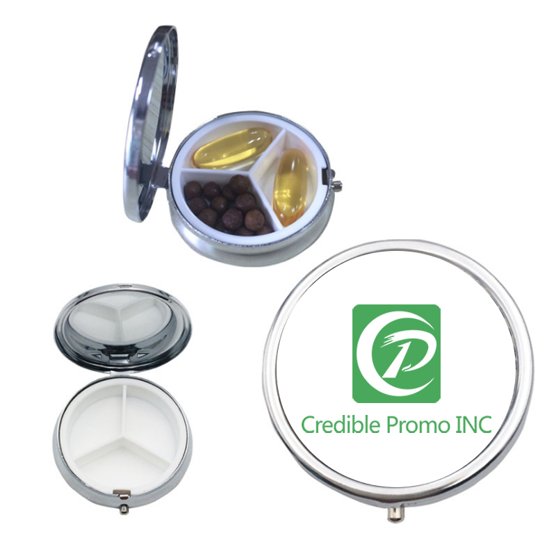 | Feature : | Personalized Silver Round Pill Box Decorative Metal Medicine Organizer |