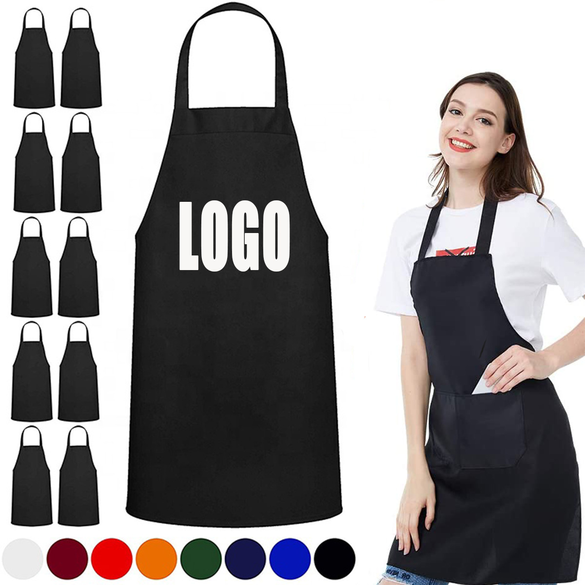 Custom Logo Pure Color Cooking Kitchen Apron For Woman Men Chef Waiter Cafe Shop BBQ Hairdresser Aprons