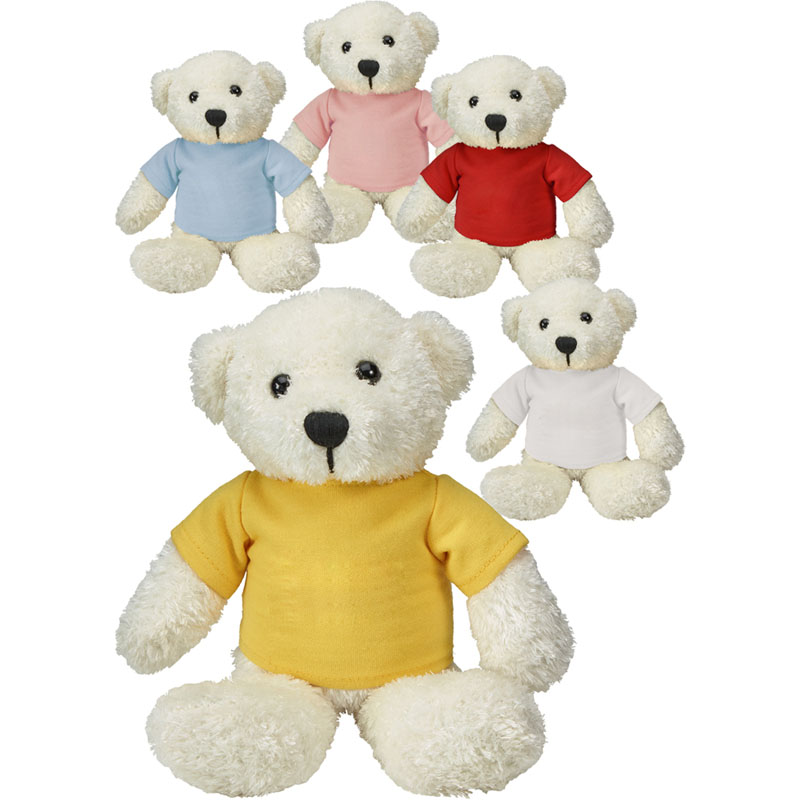 Item measures approximately 6" tall, it's the perfect size for children to bring along. This Customized plush doll is super soft and made from 100% polyester fibers. You could put your logo on the shirt, Price includes 1 color 1 location imprint on the shirt.