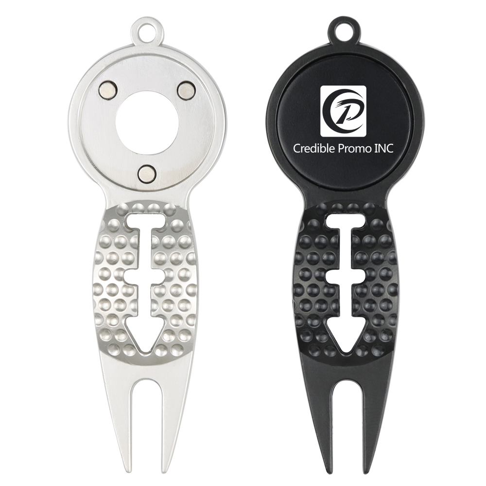 The golf divot tool adopts 3 in 1 design. It is a greens repairing tool, also equipped with detachable magnetic ball marker and golf line drawing template. This golf divot repair tool is widely used for golf course, outdoor and indoor venue. Great golf accessory and gift for golf lovers. Your logo can be customized on the ball marker, the imprint method is baking paint.