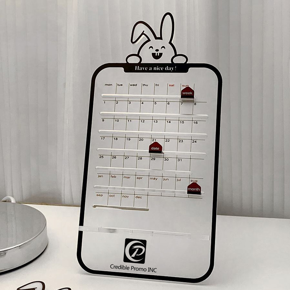 Cute Design Manual Desktop Acrylic Perpetual Calendar Phone Holder