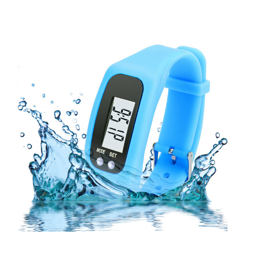 This fashionable pedometer watch is with step counter and easy to read Digital LCD display. New slim design. Comfortable adjustable silicone buckle band. Features: 12/24 hr. time. Counts steps from 0 to 99999 , Distance Mile or KM. Counts exercise calories burned kcal. Powered by 1 pc - AG10 battery. Great for any fitness program , Employee recognition, schools, seniors, brand merchandisers. Packaging options available.
