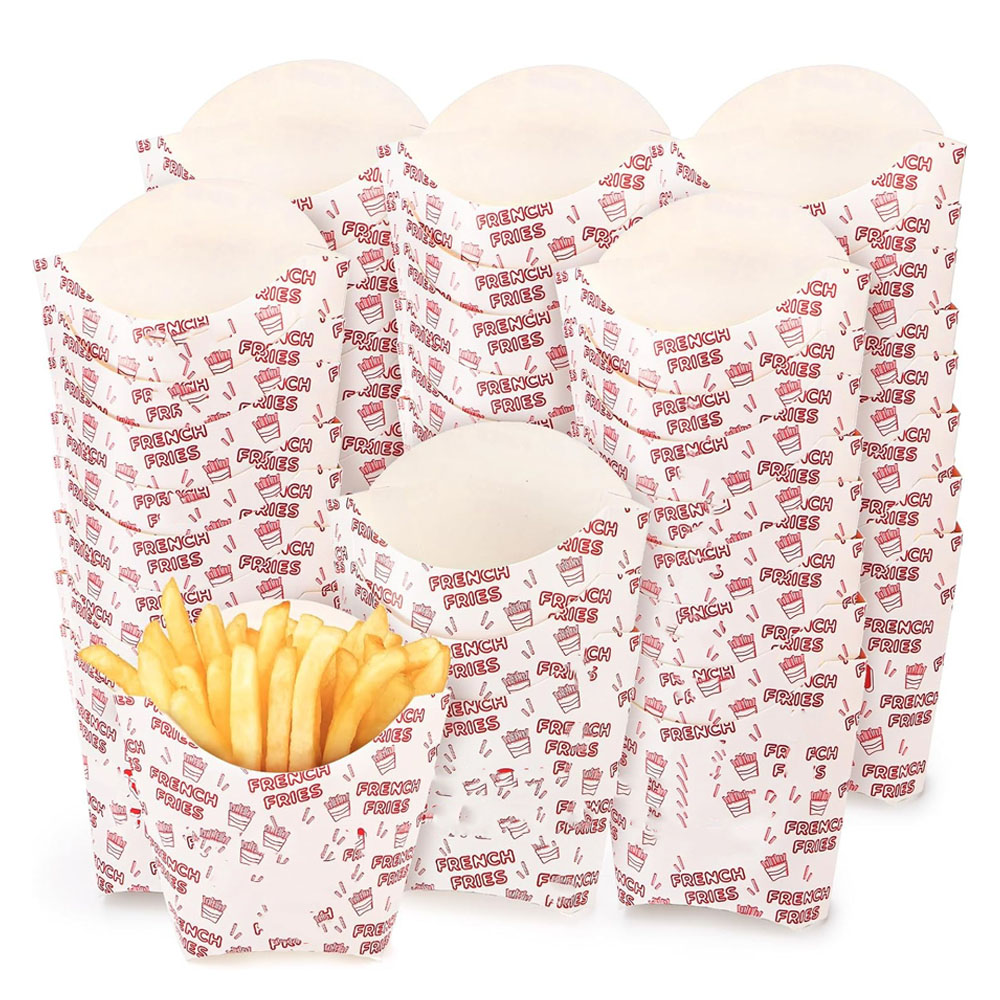 Made of food-grade white cardboard with a food-grade greaseproof coating on the inner layer to keep food crispy and prevent grease from staining your hands. Suitable for French fries, onion rings, popcorn, waffles, candy, cookies, muffins, tacos, pies, etc.