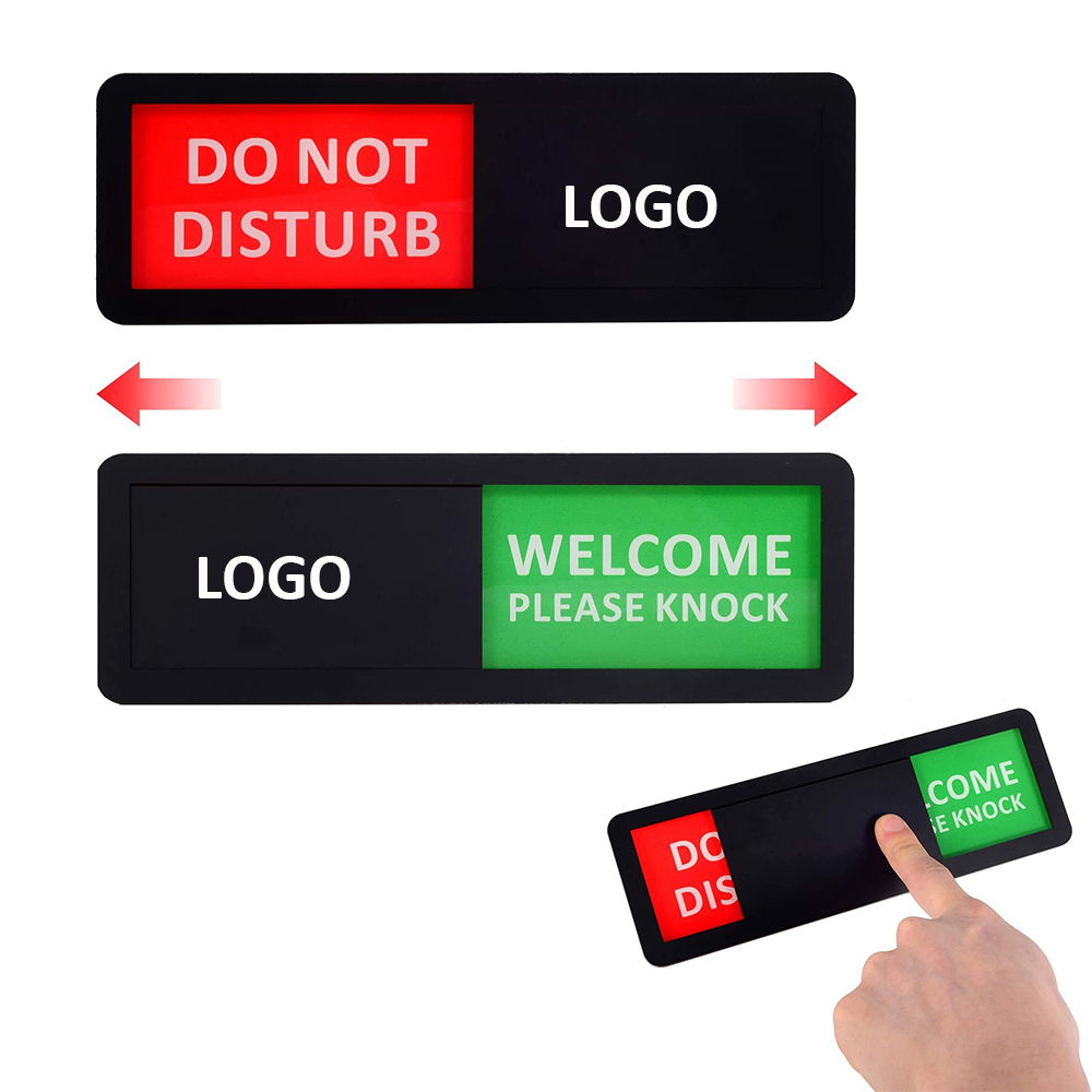 The sign is made of acrylic, printed with big bold letters in red or green background, easily visible from a distance. Size is 8.2 x 2.8 x 0.2 inches. Perfect for conference room, office room, or any room that needs privacy. Strong double sided adhesive included. Easy to install and no residue left when removed. Easy to switch between DO NOT DISTURB and WELCOME PLEASE KNOCK