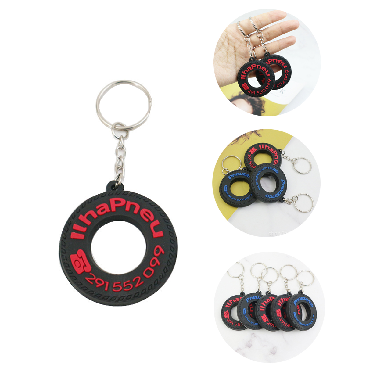 | Feature : | Double Sided Logo PVC Soft Rubber 3D Tire Keychain Keyring |