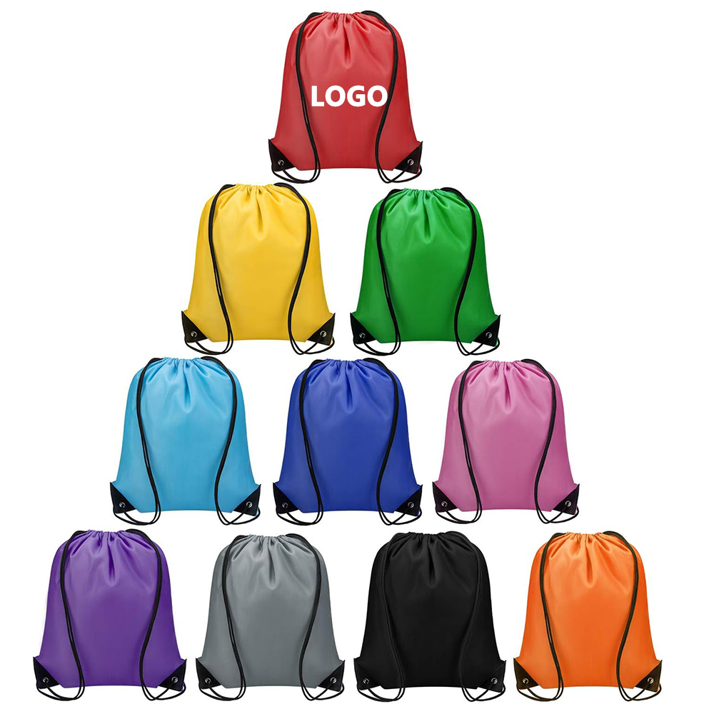 These string bags are made of quality polyester material, and are reinforced in the corner with PU leather, and they are so lightweight that everyone can enjoy carring their own stuff. The size is 14'' x 18'', it is big enough to carry a pair of shoes, bottle, basketball, an umbrella, a few books or clothing. Idea gifts for birthday party, carnival, construction giveaways.