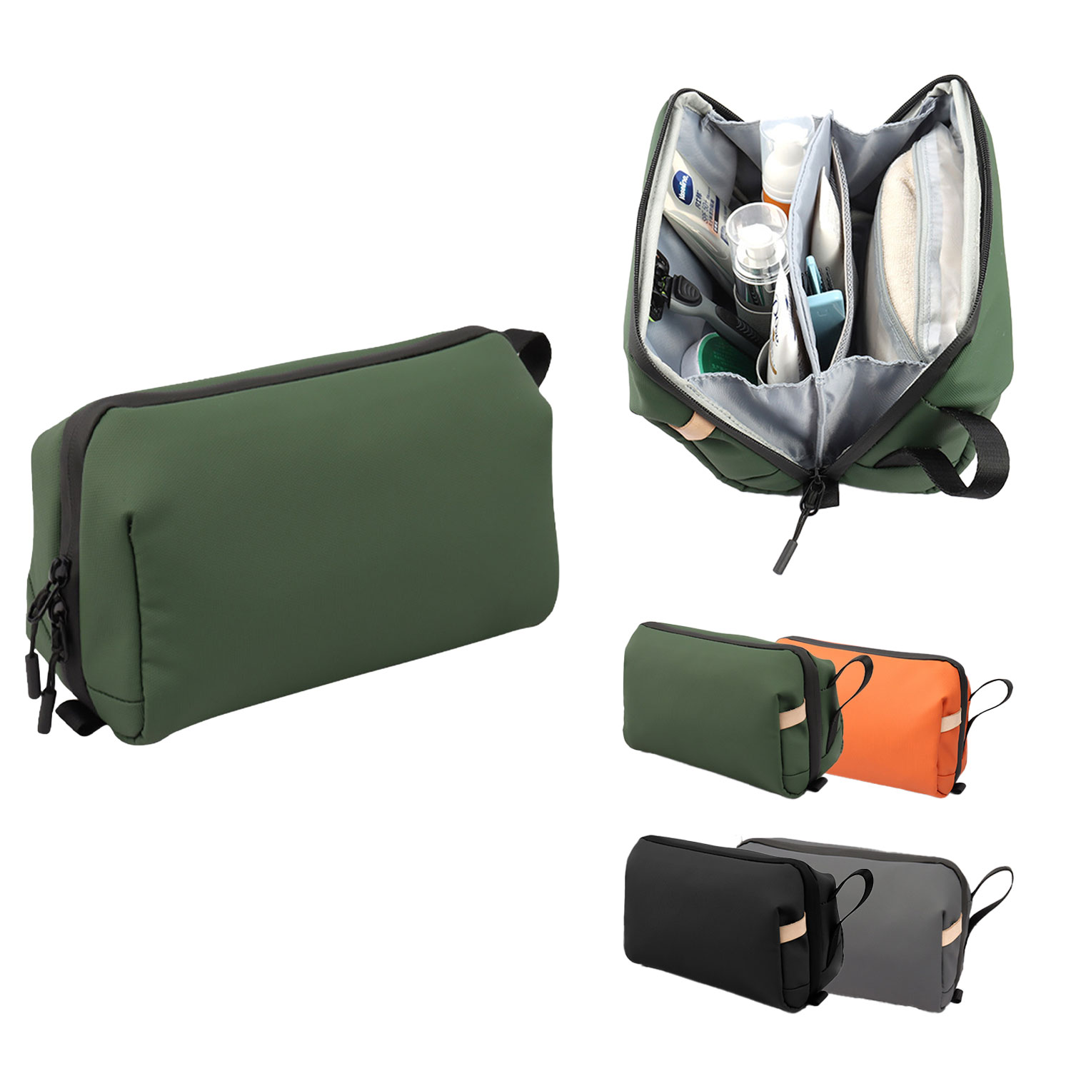This travel toiletry bag is lightweight and portable, made of waterproof fabric, and features a dry-wet separation. The partition design, combined with the elastic strap, makes storage neat and well-organized, ensuring clear classification and easy storage of toiletries. It is classic and practical. The dry-wet separation design enables reasonable storage without mutual interference. Handle design for portable hanging. It's a good companion for your outings.