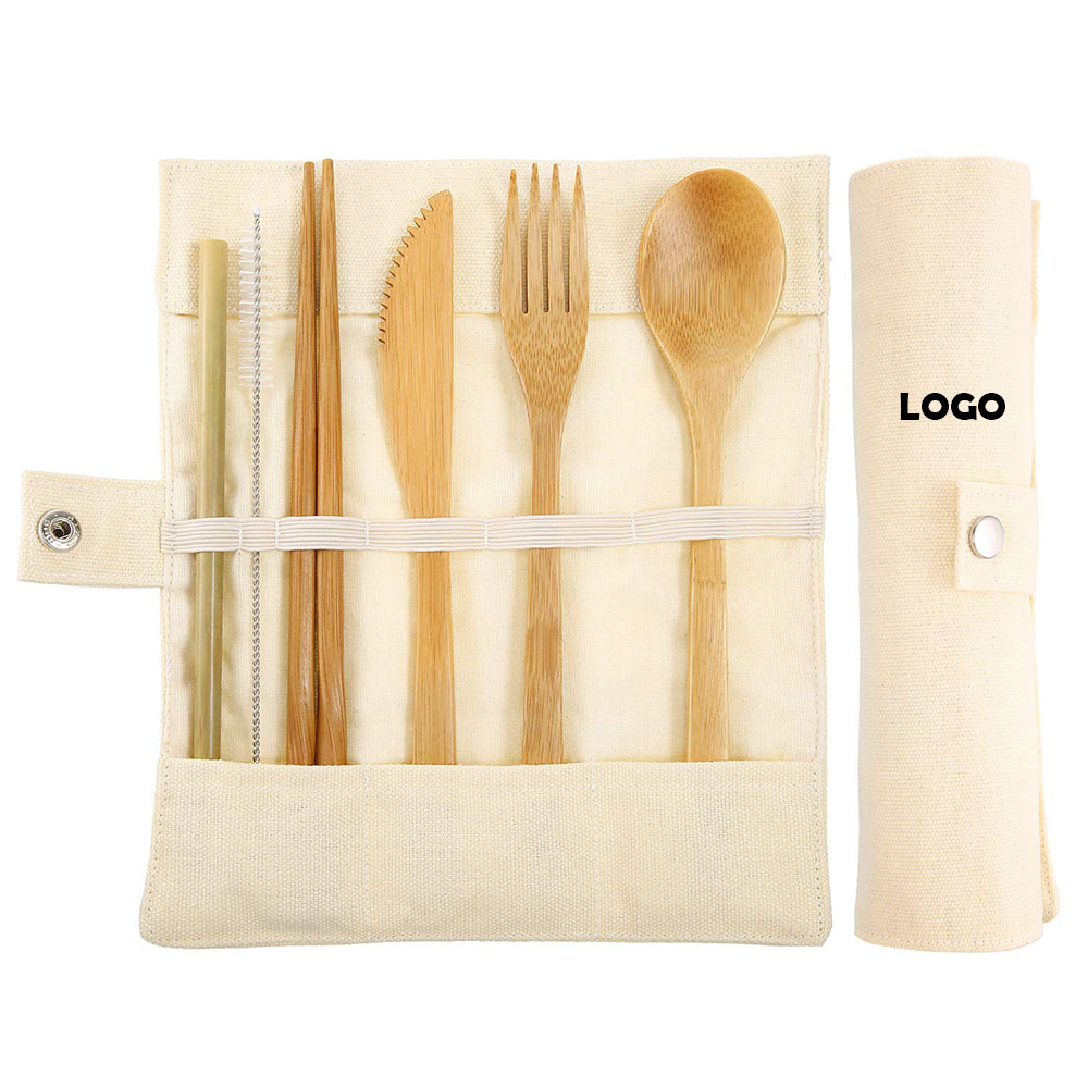 Bamboo cutlery set, each set includes: 1 x knife, 1 x fork, 1 x spoon, 1 pair of chopsticks, 1 x straws, 1 x metal brush. Portable and convenient to use, each set has a cloth pouch, this cutlery set good for travel, office, camping, outgoing to use. Reusable bamboo utensils set, harmless bamboo knife fork spoon chopsticks straws, lightweight, comfortable to use. Durable flatware, bamboo has incredible tensile strength, making this cutlery set can use long lasting and easy to clean. The pouch is designed well, each utensil has a compartment so that they aren't bumping into each other, which can build up unnecessary wear.