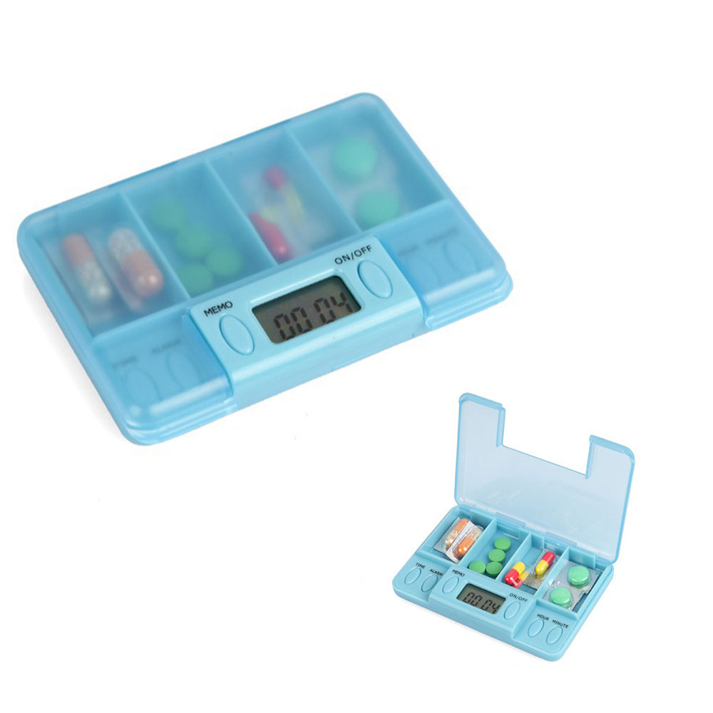 It is made of Eco-friendly ABS material. Dispense and organizer your daily medicines with ease and simplicity, making it extra simple and easy so you never forget to take your medication again, personal containers. It is suitable for patients use, be sure put this medicine chest in which children can't touch in case they by mistake,compartments case. A maximum of eight alarms can be set within 24 hours. 4 spaces to store pills.