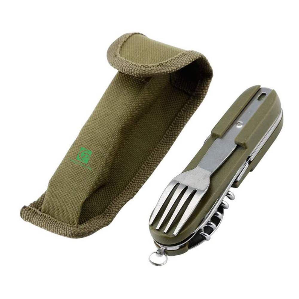 Your all in one travel utensil set consisting of spoon, fork, knife, pull the cork drill, bottle opener, can opener, wood boring vertebral with detachable fork & spoon are great for even office, picnic and outdoor activities. Say no to throwaway or plastic flatware, it is an environmental protection way to use stainless steel cutlery set. Durable and ultralight travel cutlery case, this multitool utensils come with the portable nylon carry sack, convenient to hang on waist especially when you are traveling.