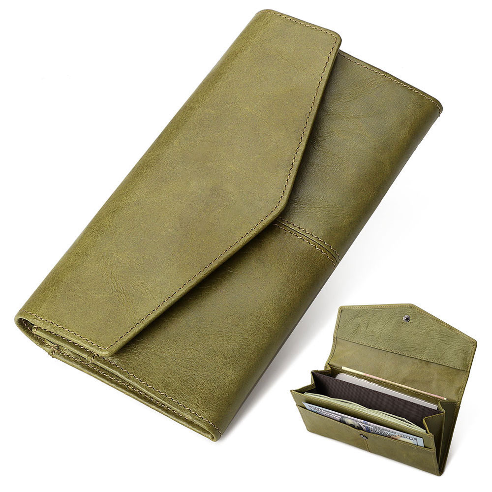 This simple classic long women's wallet is available in three colors, green, red, and black. Each color goes exceptionally well with your outfit. It is one of the essential wallets for every lady. The wallet is made of head layer cowhide leather, which is soft to the touch and has a particularly good texture. Our price includes the embossed logo.