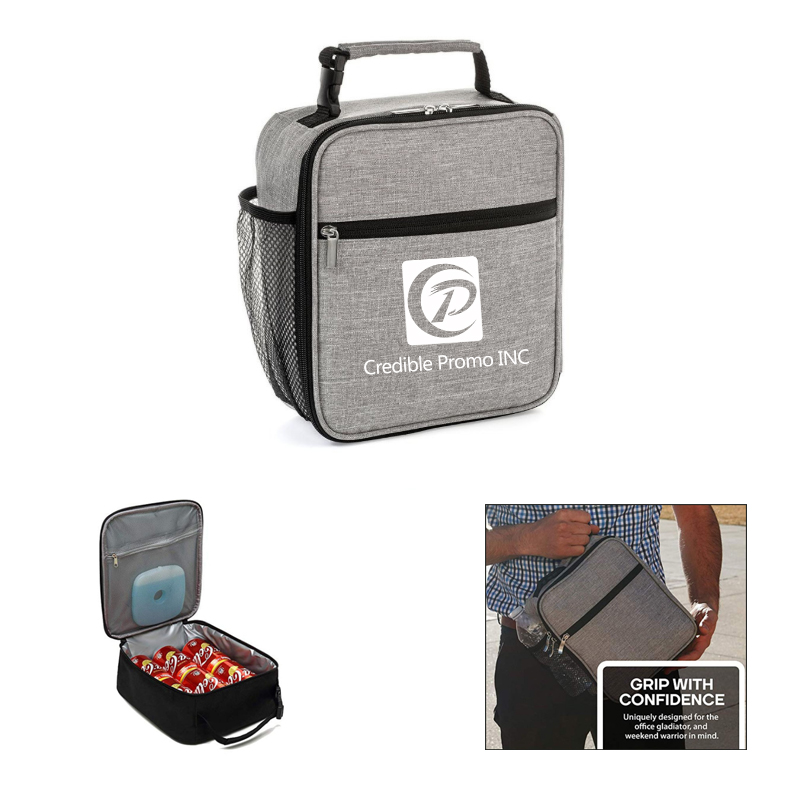 Our portable lunch bag Keep your drinks cold and the food warm. Our insulation will keep your food cold or warm for when you're taking on the daily grind. Your logo can be also imprinted on the bag.
