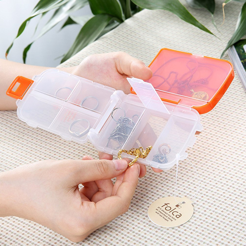 | Feature : | Portable Mini Seal Stratified Trinket Jewelry Drug Pills 8 Grid Storage Case Box Holder Organizer Container |