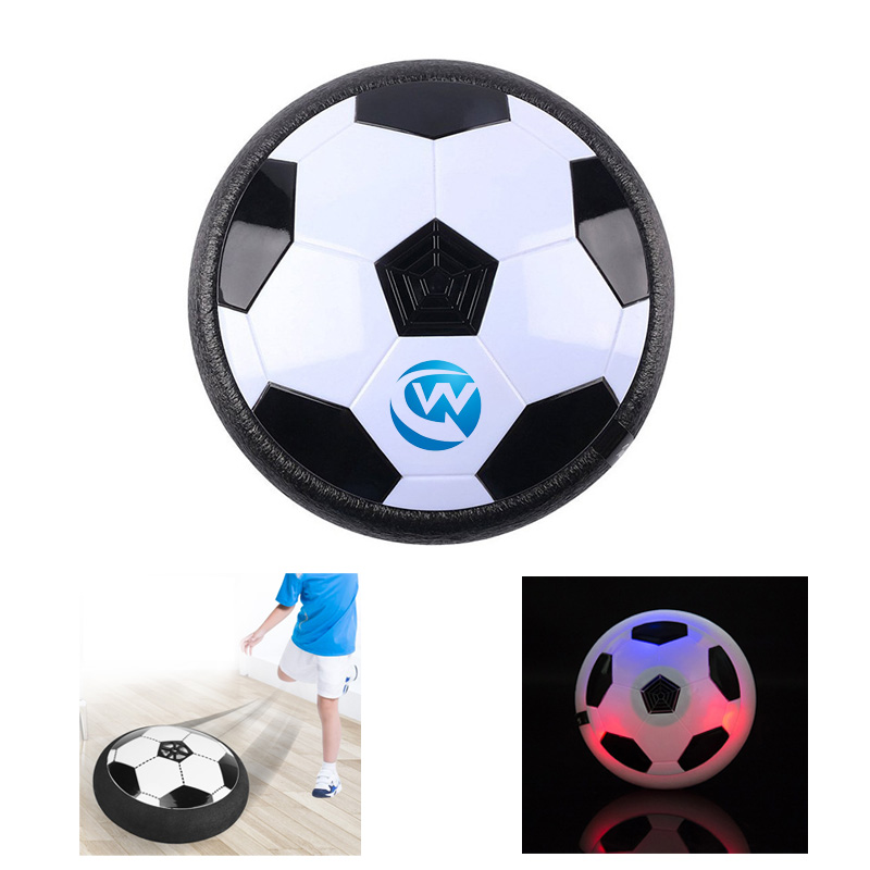 The Air power football can glide over any smooth surface. That is great for both indoor or outdoor, fun for all ages. Powerful fans create a cushion of air turning any surface into an instant playing field. The soft cushion of foam surrounding the edge of the disc protects furniture and wall from damage. It is a kind of learning toys with colorful LED lights indoor, and powerful LED lights let the game go on even at night. Requires 4xAA batteries(included). Size: 2.7"x7.2"Diameter.