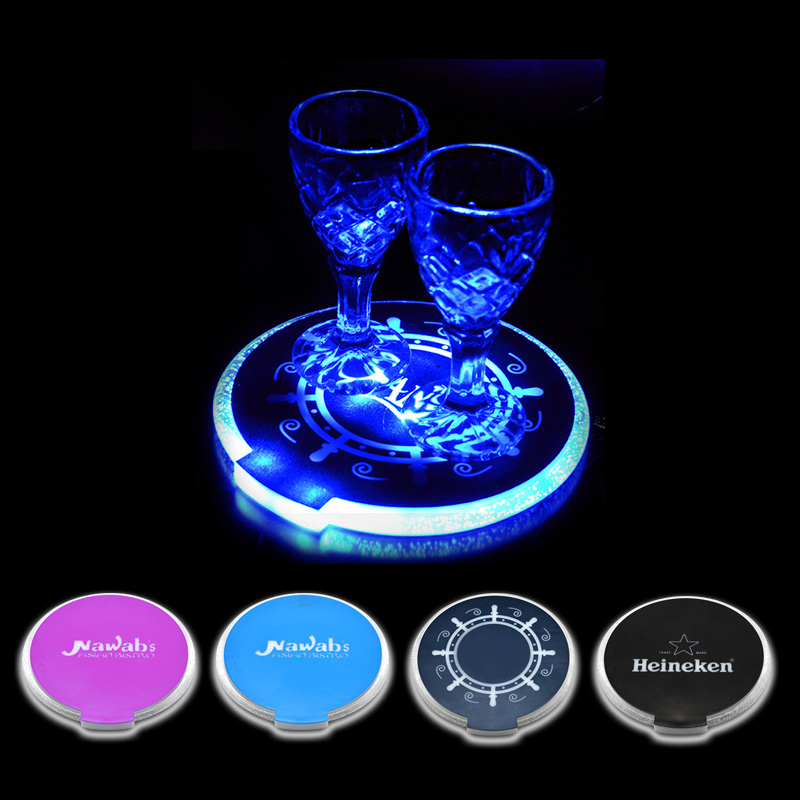 | Feature : | Colorful LED Light Drink Glass Bottle Cup Coaster Mat |