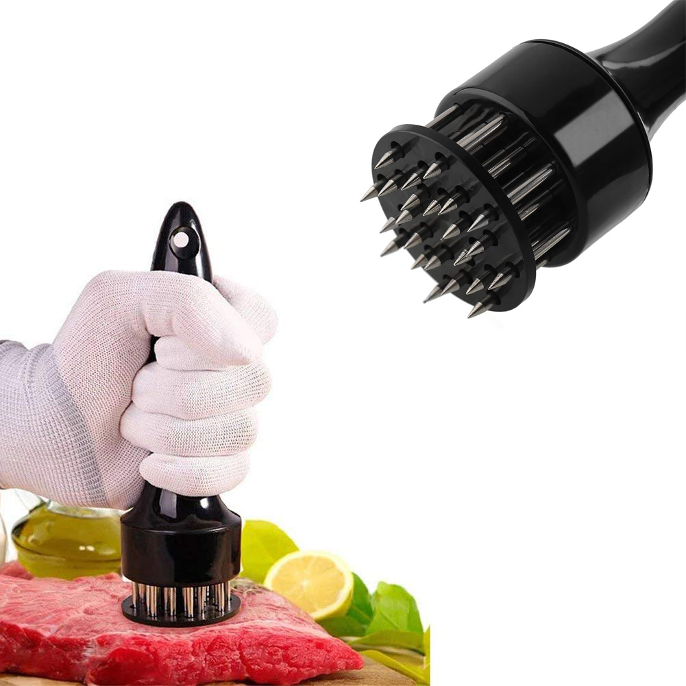 Meat 24 blades stainless steel tender is easy to use. Just hold the meat tenderizer (Sleek shape fits in the hand and most tools holders), tenderize any tpye of meat in natural process, keep the muscles fibers and the collagen as it is. Blades only deploy while pressing into meat and automatically retract. The sharp tip will work with just a few clicks. When not in use, just hang it with the hole anywhere. Suitable for Steak Chicken Fish Meat Pork Veal Beef Flavor Maximizer Tenderizing BBQ Marinade.