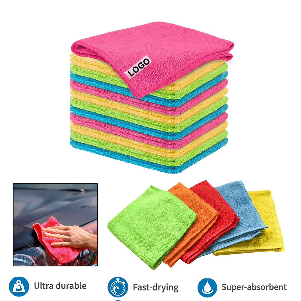 The highly durable microfiber cleaning cloth is perfect for all of your cleaning needs. Whether you are dusting furniture, wiping down your kitchen counter, detailing your car, or cleaning your boat, these non-abrasive microfiber towel will not let you down. The 12" x 12" cleaning cloth is super absorbent. Once you are finished with the towel, you can throw them in the washer with similar items. You can custom your LOGO on the label. Welcome to inquiry!