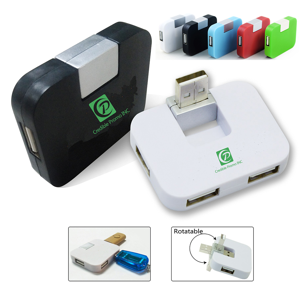 Our HUB high speed USB 2.0 with 4 USB ports provides access to charge & connect up to 4 USB devices at once! This HUB is small and compact with foldable USB insert makes it perfect for traveling with you on-the-go! The USB hub is made of ABS plastic and does not require drivers or software. Made for mobility, the USB input port folds under for storage. USB cables not included. Large enough imprint area for your message to shine.