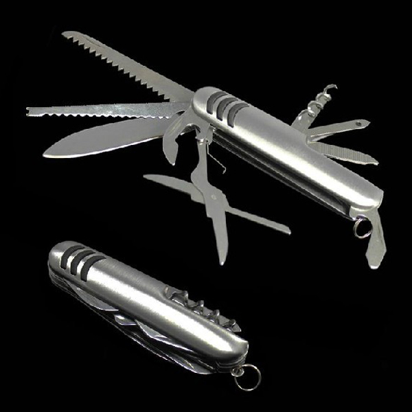Get this tool kit, you will be a great handyman. This Stainless steel multi tool includes 1 knife, 1 little shear, 3 bottle openers, 1 screwdriver, 1 nail file and 2 saws. It can meet an array of needs. LOGO can be laser engraved or silkscren imprinted on the handle. Each packed in one opp bag and white box.