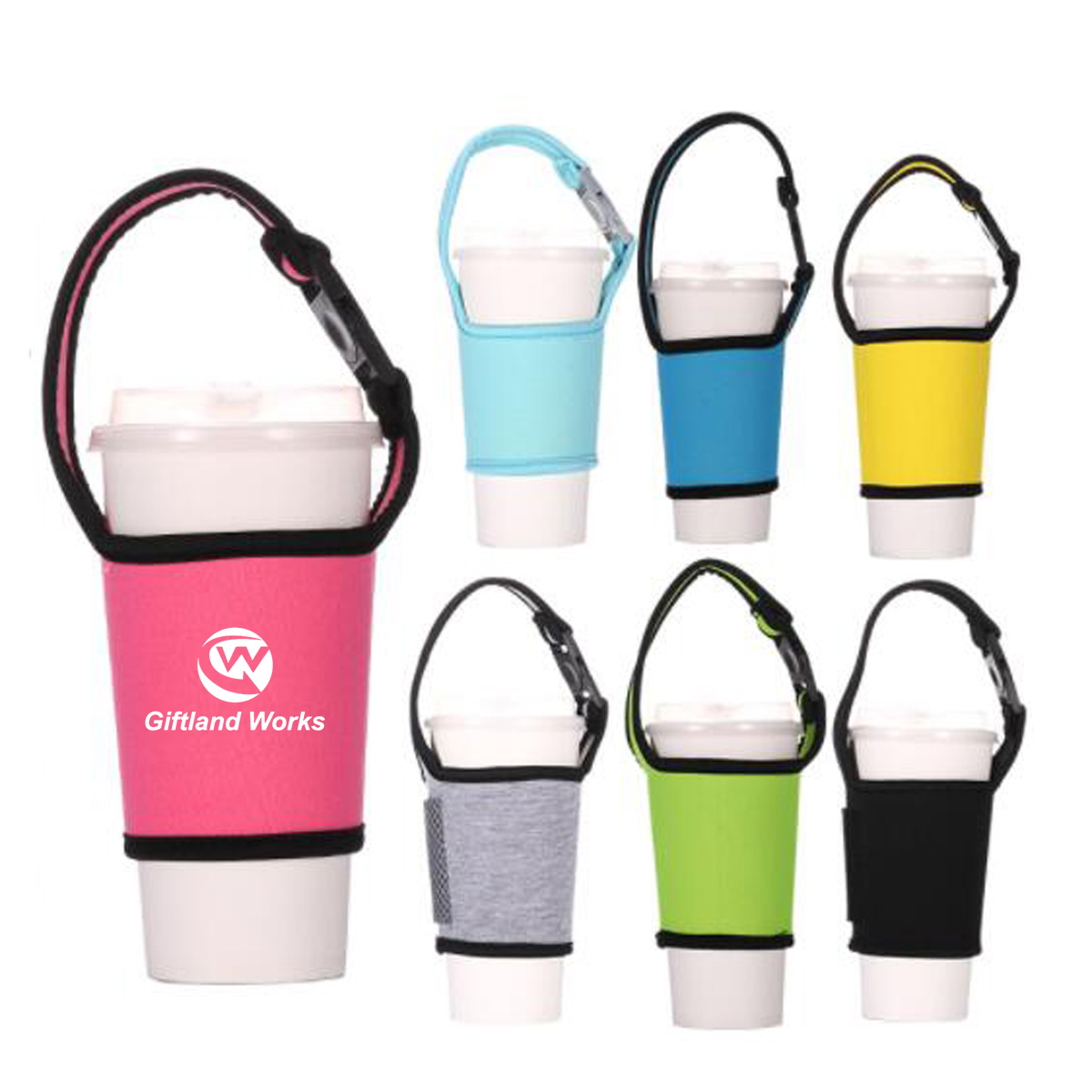Thermal and moisture insulator Neoprene, perfect for holding hot or cold drinks. One size fits all standard sizes of paper coffee & tea cups. Uniquely tapered Fits 12, 16, 20, 24oz paper and glass cups, cold tumblers, water and sports bottles. Matching with handles rope, comfortable and portable. Good for gifts and special decoration for party. Great alternative to disposable drink sleeves.
