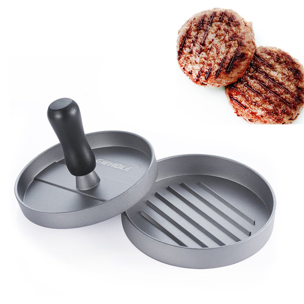 Food-grade aluminum die-cast, pie plate as a whole, the quality is reliable. Simply load the burger maker with meat, fish or a veggie mixture and press down the handle to produce a perfect thick round burger! Non-stick cast aluminum, match 40 wax paper included, which makes releasing the burger from the press a breeze, also can be used for BBQ. More than a mold. Can be used as a roast plate and heated on the fire directly. Detachable solid plastic handle saves storage space when going out for picnic or outdoor BBQ.