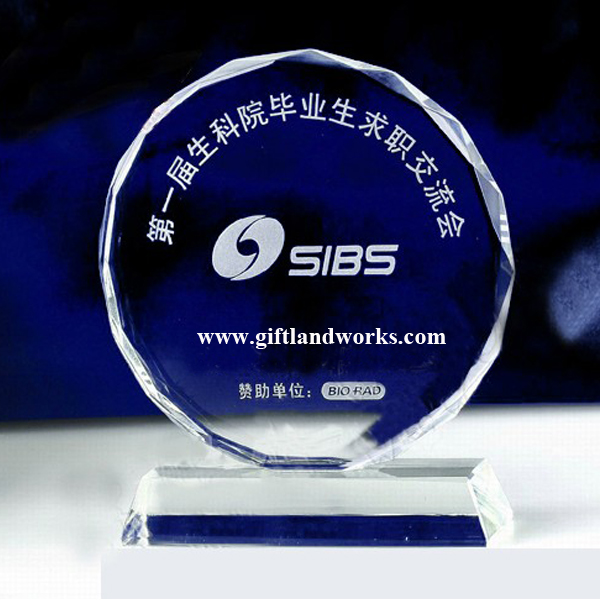 Optical Crystal Award, sun flower shape. Five size for your option: 8 5/8"x7 7/8", 7"x7 7/8", 6 1/4"x7", 6"x6 5/8", 4 3/4"x5 1/2". Your commend and LOGO can be etched on the surface or laser engraved inside. Each packed in one gift box.