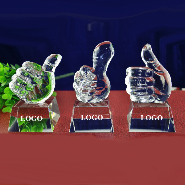 Thumb Optical Crystal Award, size is 2 3/4"x2 3/4"x4 3/4". Three thumb shapes for your option. Your commend and LOGO can be etched on the base. Each packed in one gift box.