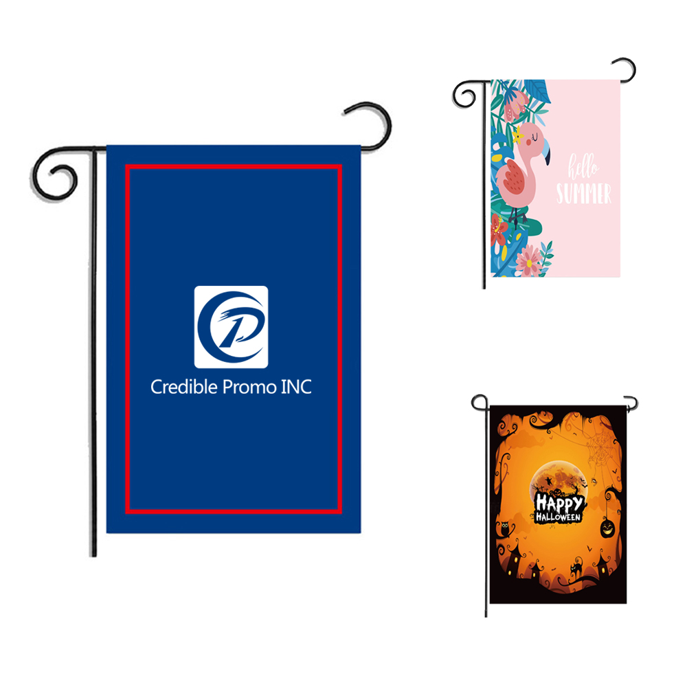 Dress up your yards with these custom garden flags, celebrate with your loved ones. Made of high quality polyester, durable, sturdy and weather resistant. Custom your LOGO with clear heat transfer printing patterns. 1113/16" x 17 11/16" size. Price doesn't include flag pole. Other sizes available, please contact with ideal sizes.