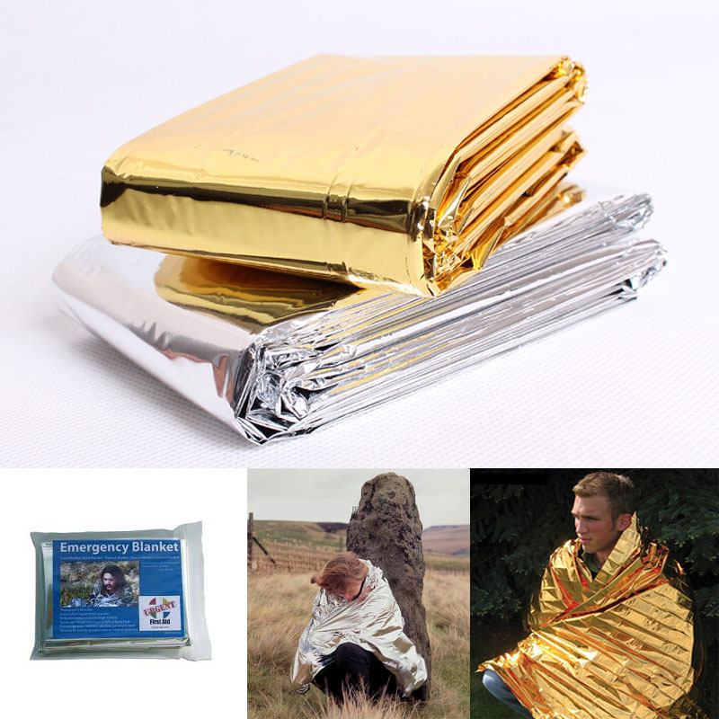 Outdoor emergency blanket. Everyone need it ! Made of space-age material, lightweight, waterproof, reusable, and portable. Keep one in your car or bag in case of emergency to protect you from cold, rain and wind. It can also be used as a poncho, canopy or ground cover when hiking, camping, boating or other outdoor activities. Attractive glaring gold or sliver color will attract rescuer's attention easily.