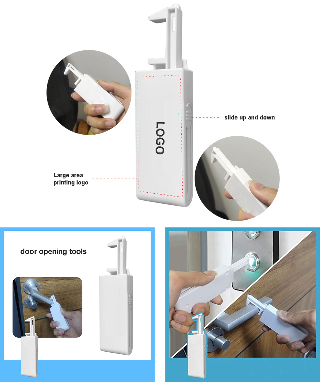 This tool is made of high-quality ABS which is durable and solid to use, helps you avoid direct contact with public equipments, not only to protect yourself, but also can help to protect the health of your family. It is easy to use, slips on quickly with no tools required. It can help you to open the door, press elevator button, move chairs, flush a toilet pull, drawer handles/ door knobs, and carry grocery bags, etc. Small size makes it easy to carry, even can put into your pocket or bag, which is very convenient and practical.