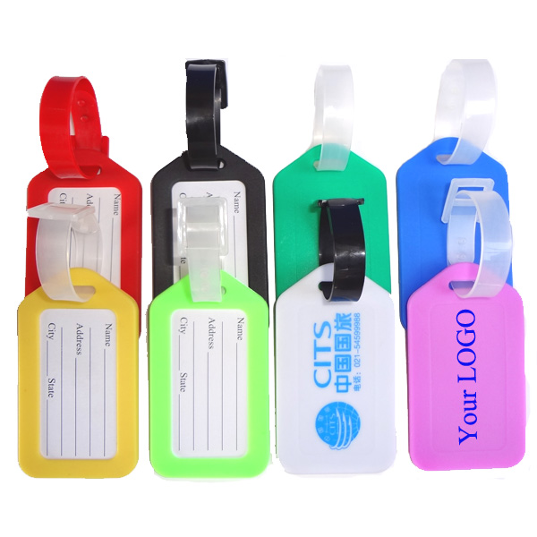 This PP luggage tag, size is 3.3"x2". With a name paper card inside. Buckle it on the luggage's handle with the strap. Many colors and your customized LOGO is available.