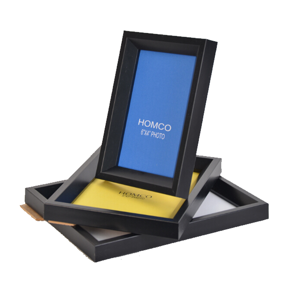 PS frame, photo size 4"x6". 1.5mm glass, color face paper, 2.5mm MDF back with easel,white corners and shrink wrap. We have other size for your option: 5"x7", 6"x8", 8"x10". Oversea production time around 10 days, and transportation time 25-35 days by Sea. Please contact us to inquiry.