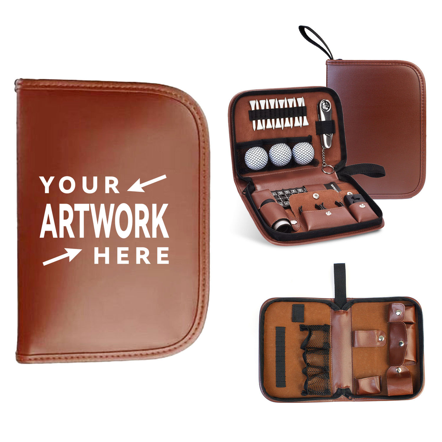 PU Leather Golf Accessory Storage Bag with