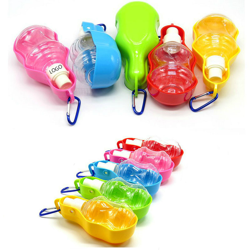 Pet outdoor travel portable folding drinking bottle, made from food grade plastic material. Easy to carry with a hang buckle. Simply unfold, squeeze the bottle, and water fills from the tray, ready to be lapped up by one thirsty dog. Lightweight and shapely for your pet on travel, hiking or outdoors. Price shown is for 8.5oz/250ml capacity. We also have 17/500ml capacity. Your logo can be imprinted on the cap of bottle.