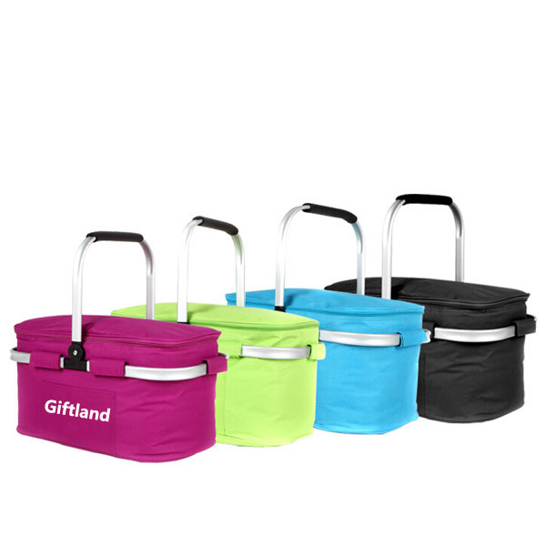 600D Polyester collapsible picnic camping basket cooler bag with enforced aluminum handle. Max load 20 Kilograms. Collapses for easy storage. Suitable for driving trip, holiday outing, family picnic etc. Using with 3 or 4 ice bags refrigerated up to 16 hours.