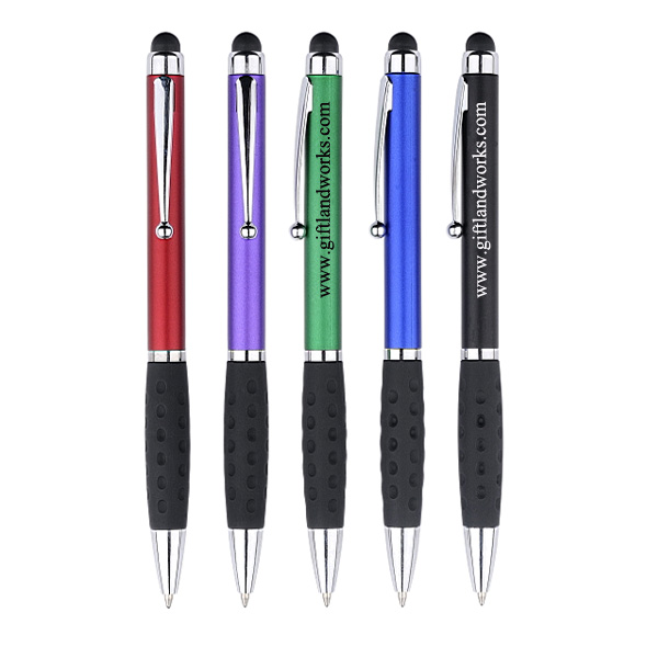 | Feature : | Plastic Stylus Pen, brightly colored barrel and soft rubber grip. |