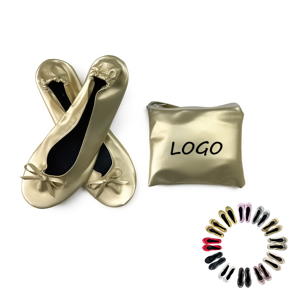 Portable PU Leather Foldable Ballet Flat Roll Up Slipper Shoes